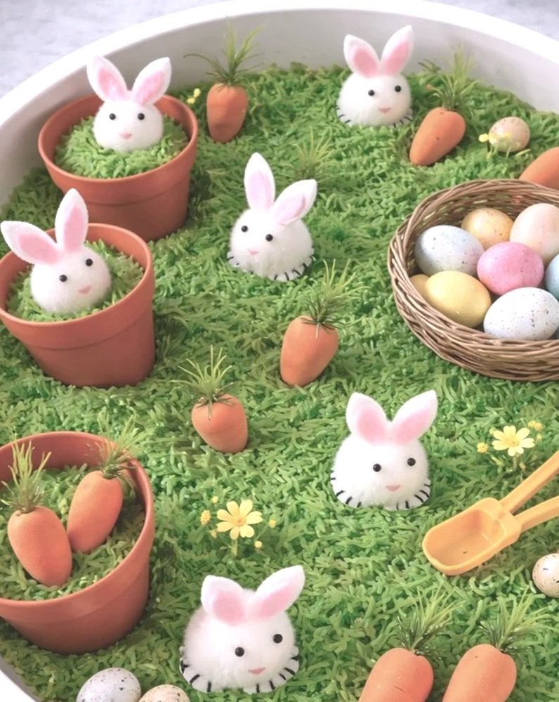 Wenn der Frühling einzieht, wird es bunt, lebendig und ein bisschen magisch. In dieser Oster-Sensory-Box entdecken die Kinder eine kleine Hasenwelt zwischen Karotten, Eiern und weichen Naturmaterialien.